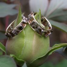 Trouwringen met een nieuwe figuratie Zebra, de patronen zijn zowel buiten als aan de binnenkant van de ringen het zelfde.