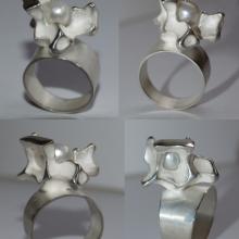 Deze sieraden (ringen en armband) zijn ontstaan na een opdracht van een klant om van oma's parels weer iets nieuws te maken, hiervoor heb ik een aantal zilveren sieraden ontworpen die men hier kan zien.