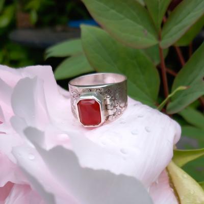 Mokume-gane doosring gemaakt van Zilver met Mokume-gane en een Carneool als edelsteen. Ik heb de ring vernoemd naar de Paus Franciscus die op tweede paasdag 2025 stierf.