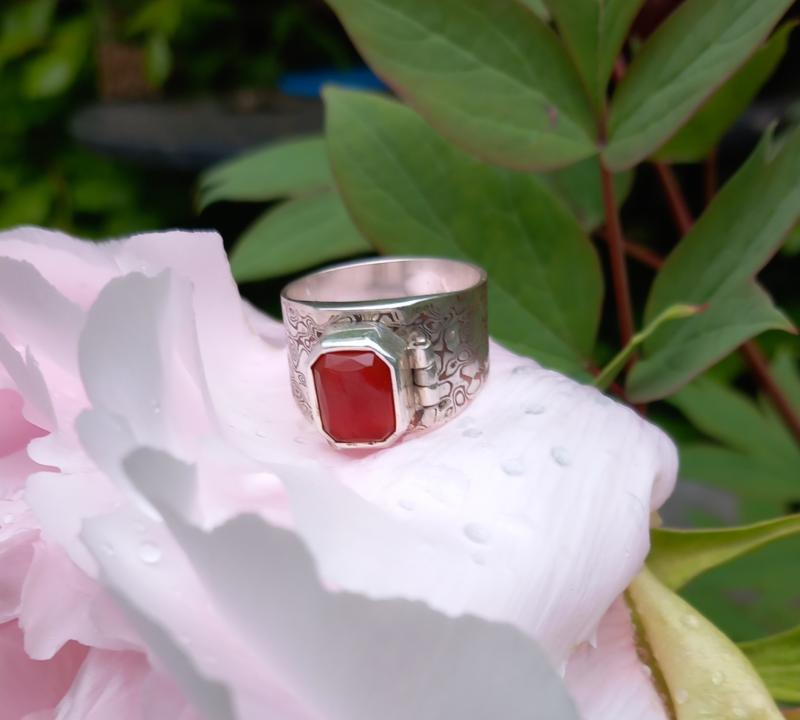 Deze ring heeft een klein doosje misschien wel om een relikwie in op te bergen van een dierbaar iemand.