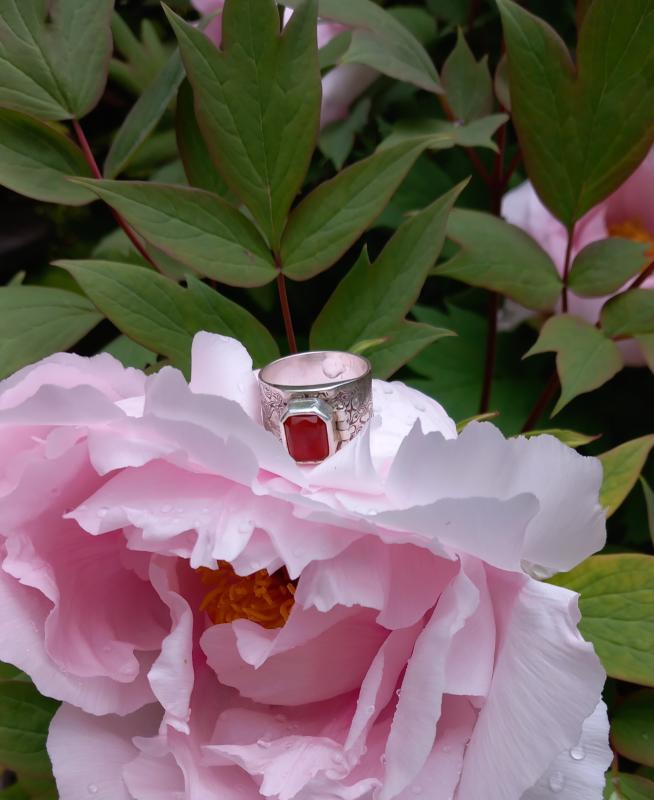 Kardinaalring "Franciscus" met Mokume-gane en Carneool