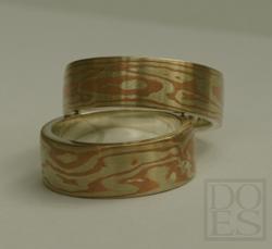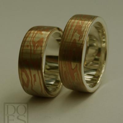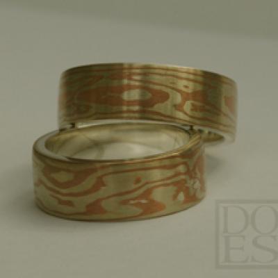 Mokume-gane Trouwringen "Champagne"